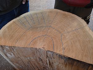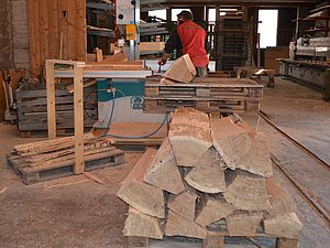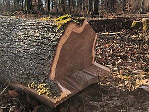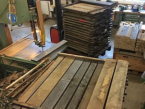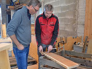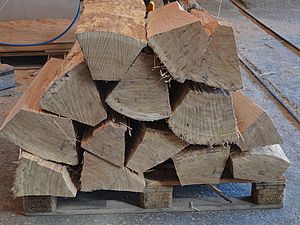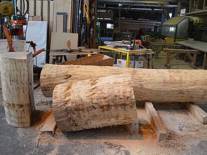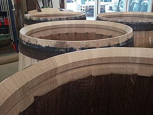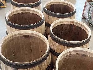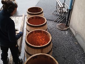 Anfang 2017 war es soweit. Zusammen mit dem extra angereisten Küfer und dem inzwischen pensionierten Förster Felix Binder begutachteten wir den Tegerfelder Wald und hielten Ausschau nach geraden und langsam gewachsenen Eichen auf eher kargem Boden, mit möglichst wenig Ästen sowie einem Alter von 150-200 Jahren. Wir wurden fündig - insgesamt 7 Eichen fällten die Forstleute in den Tagen um den nächsten Neumond. Zu diesem Zeitpunkt ist der Wassergehalt der Bäume reduziert und ideal für das Fällen. Anschliessend liessen wir die Eichen ins Muotatal zu einer für das Spalten und Aufsagen von Barriqueholz spezialisierten Sagerei transportieren. Nach dieser ersten Weiterverarbeitung war Geduld angesagt. Rund 3 Jahre muss das Holz bei Wind und Wetter lagern, bevor die Barriqueproduktion vonstatten gehen kann.