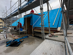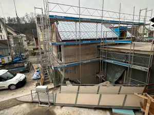 Auf der Baustelle ging es in den letzten Wochen etwas ruhiger voran. Wir warten zurzeit noch auf die Fenster – erst wenn diese eingesetzt sind, kann der Innenausbau richtig starten.